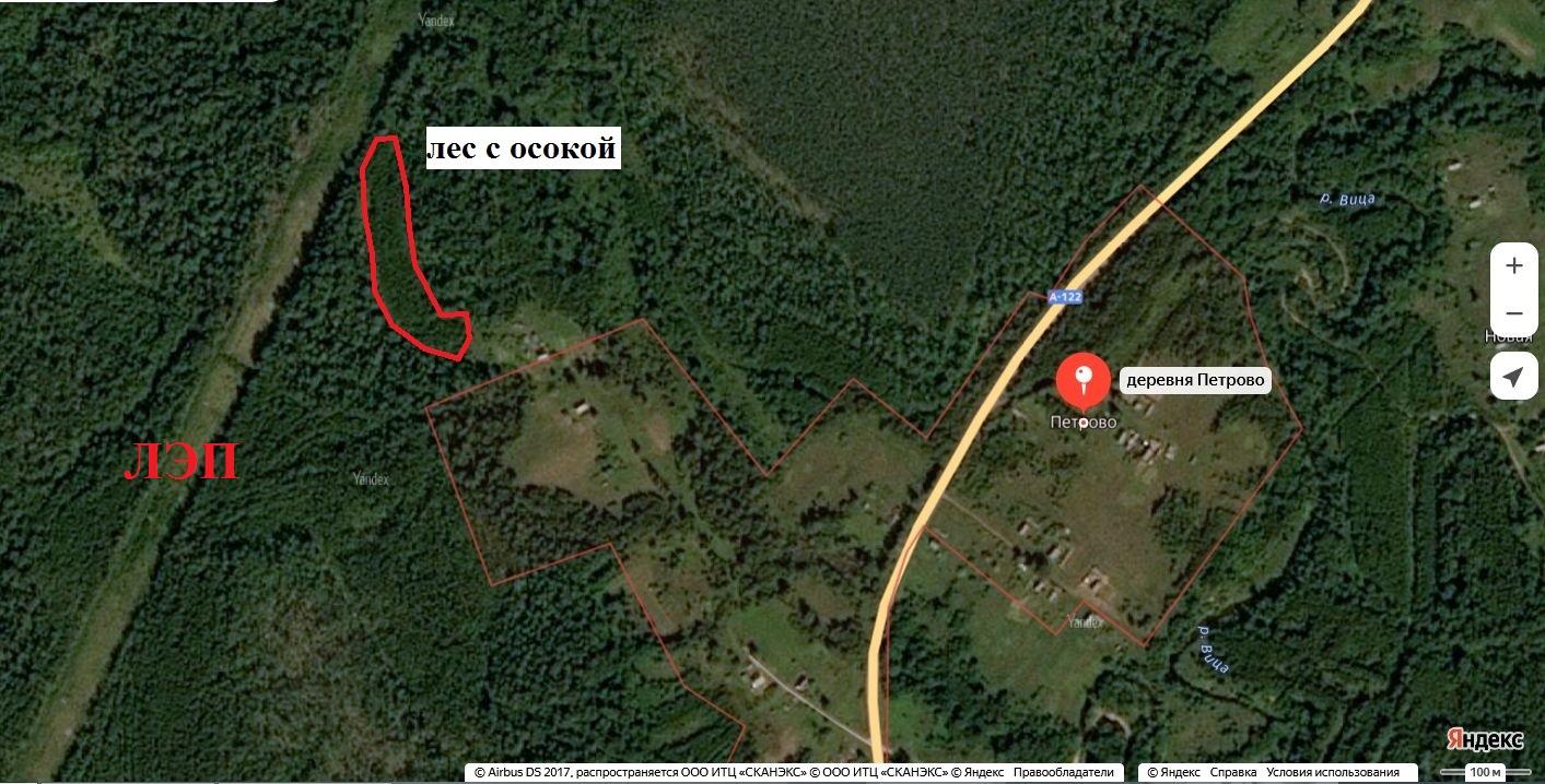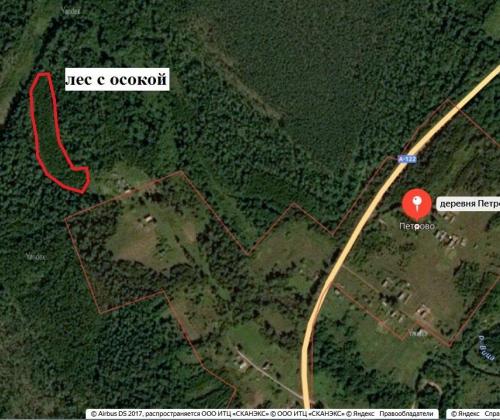 Это бывшее поле, на котором сейчас растёт молодой лес, хорошо видно на Яндекс-картах. Получается, что осока трясунковидная произрастает здесь на площади 90 соток. Впечатляющий результат всего за 30 лет! Наверное, это самое обширная популяция в Новгородской области!